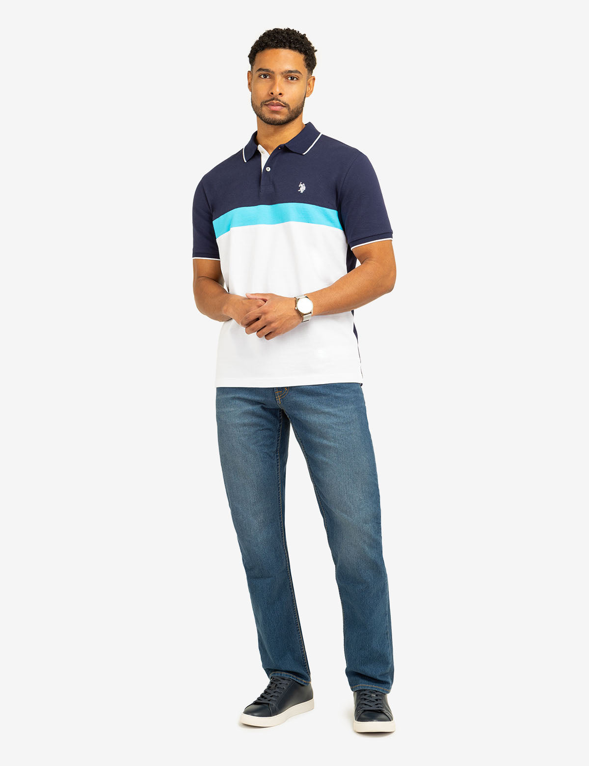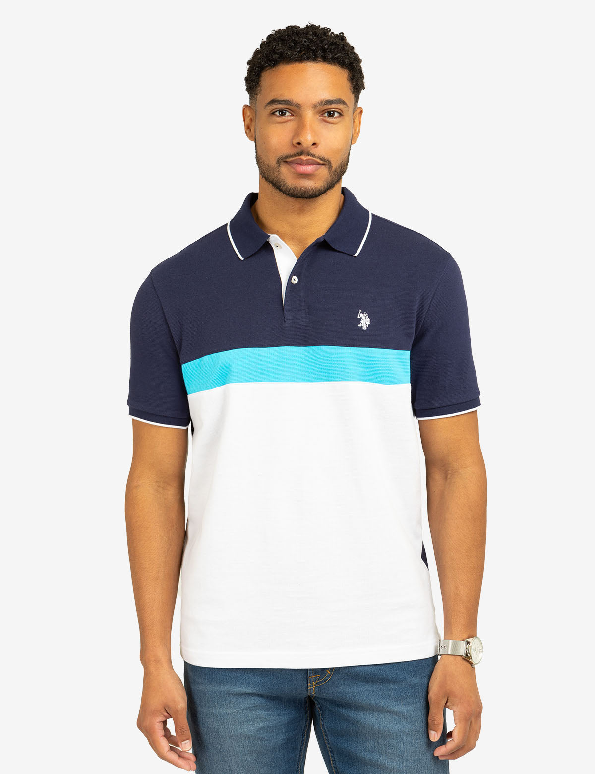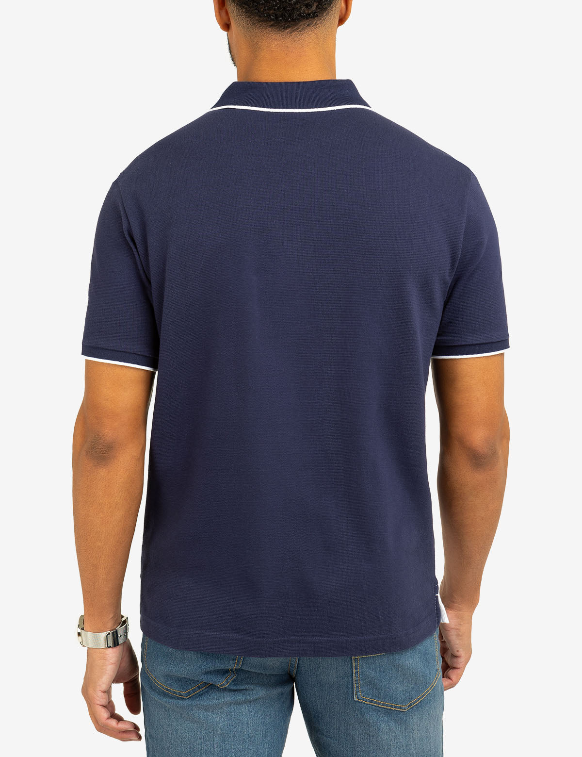 COLOR BLOCK OTTOMAN TEXTURE KNIT POLO SHIRT