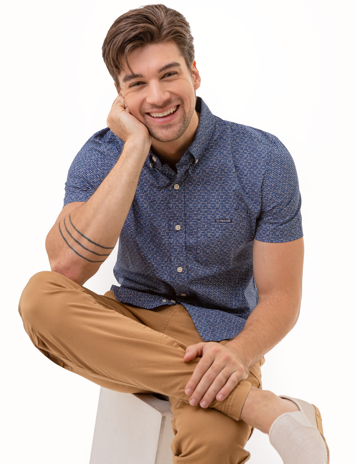 PRINTED STRETCH POPLIN SHORT SLEEVE SHIRT