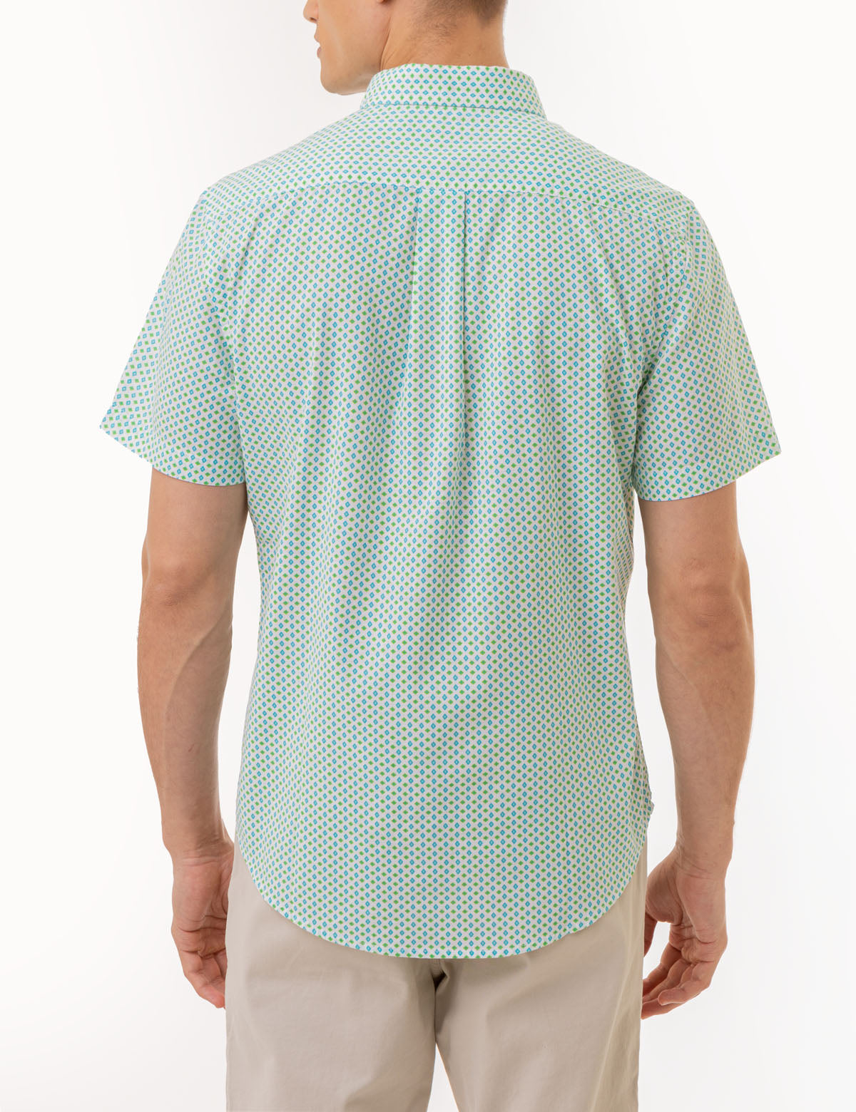 SHORT SLEEVE DIAMOND PRINT WOVEN SHIRT