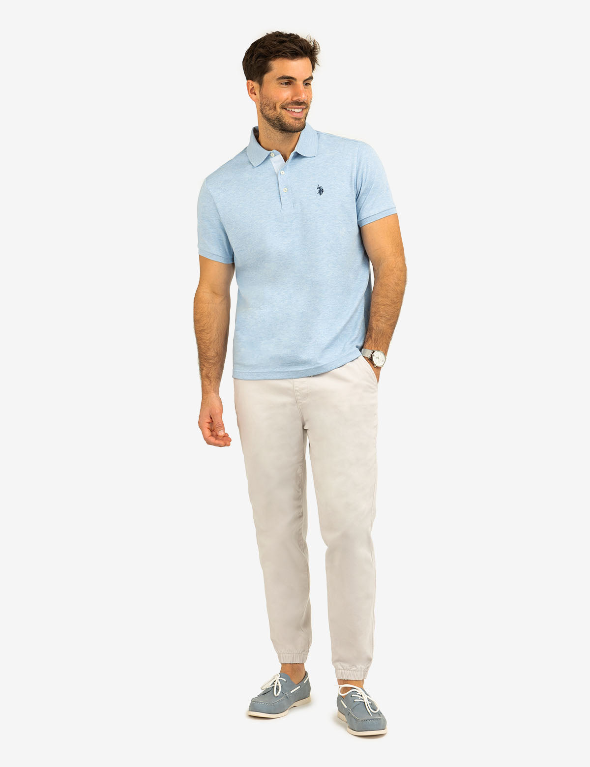 SOLID INTERLOCK POLO SHIRT WITH WOVEN TRIM