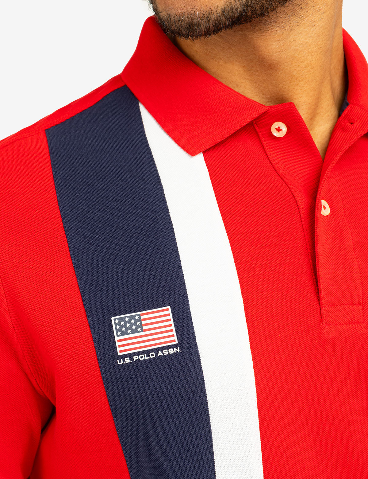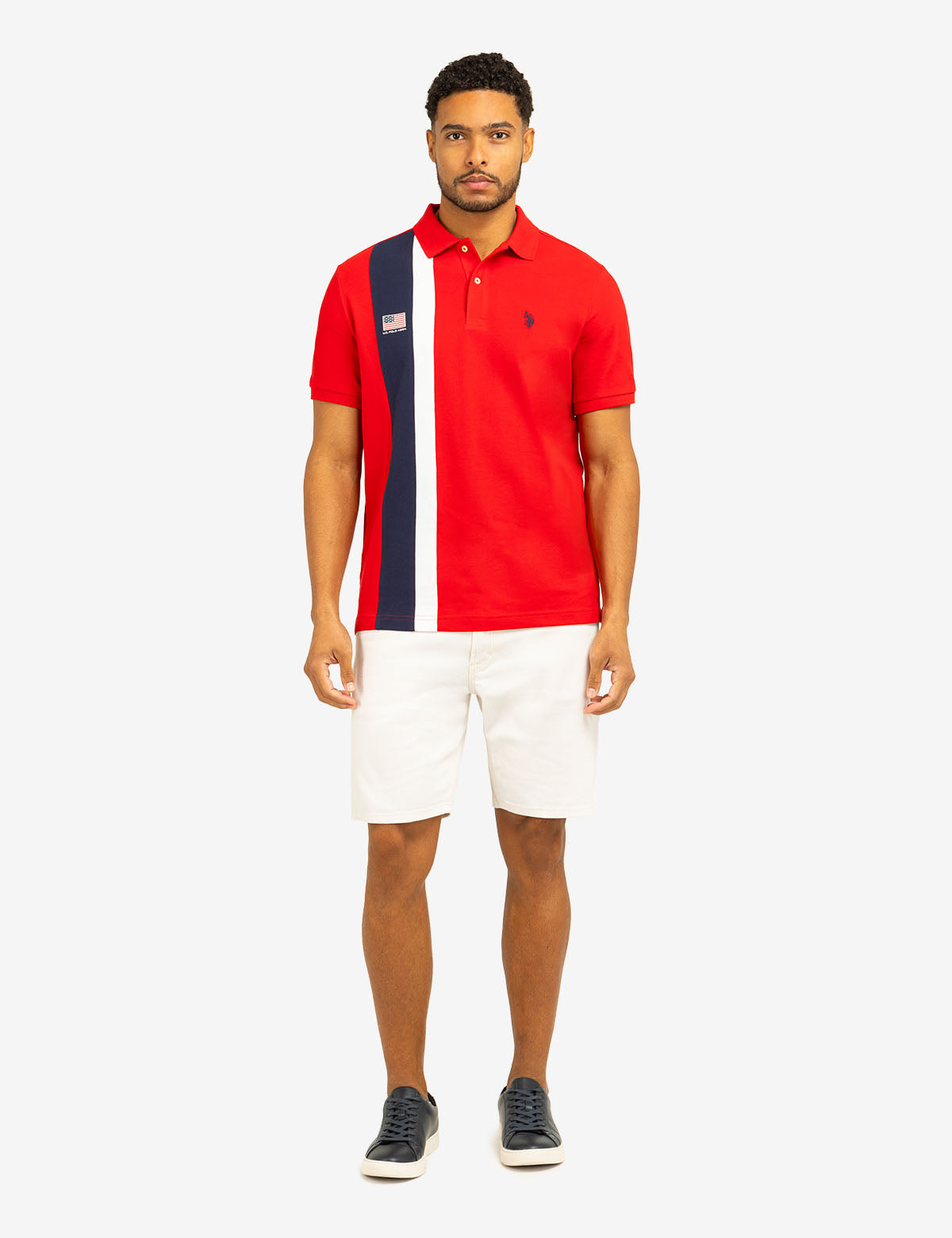VERTICAL SASH COLOR BLOCK PIQUE POLO SHIRT