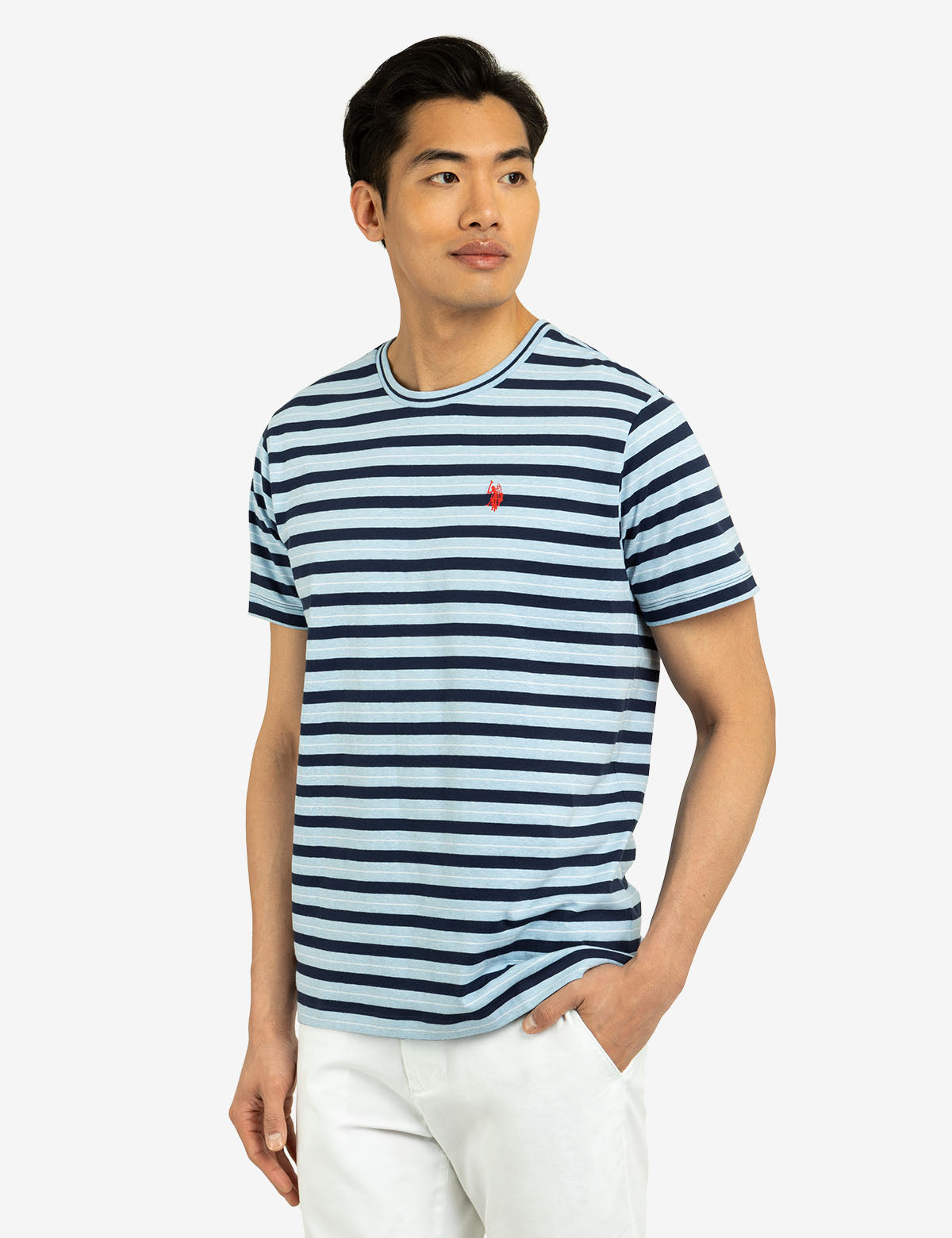 YARN DYE STRIPE JERSEY CREW NECK T-SHIRT