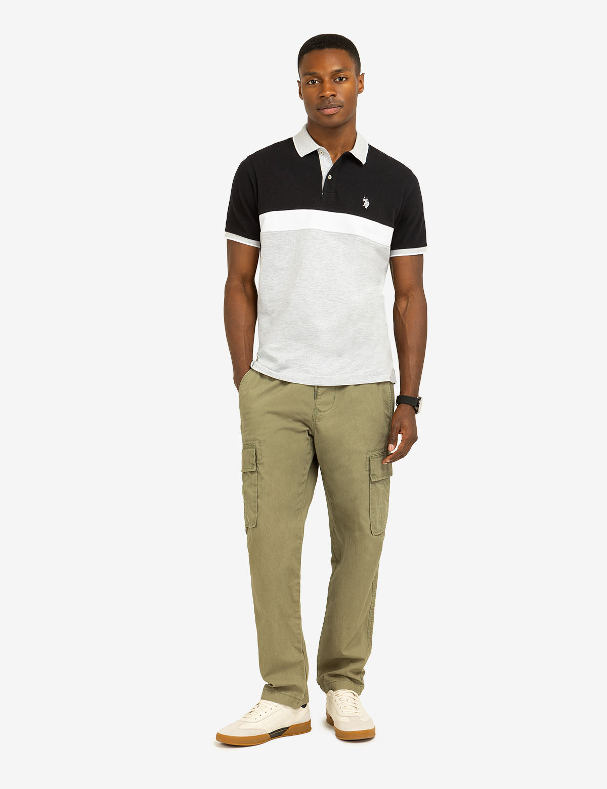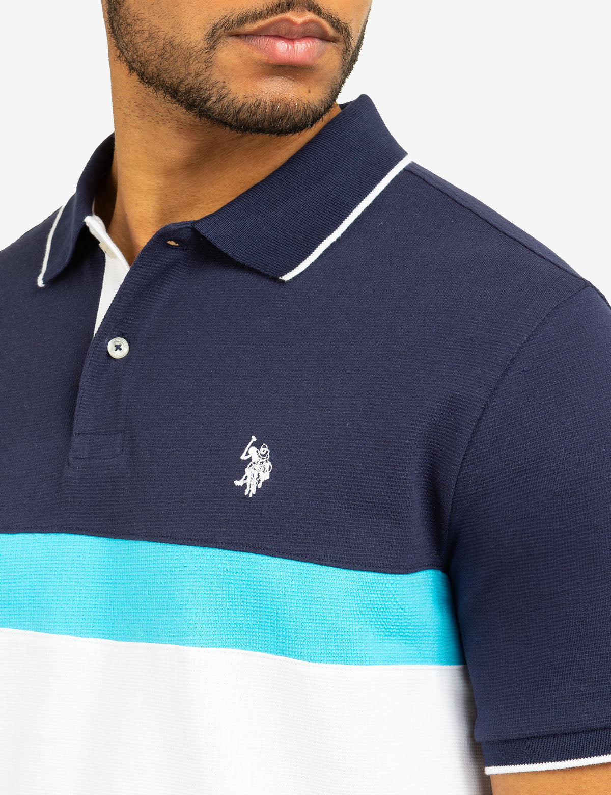 COLOR BLOCK OTTOMAN TEXTURE KNIT POLO SHIRT