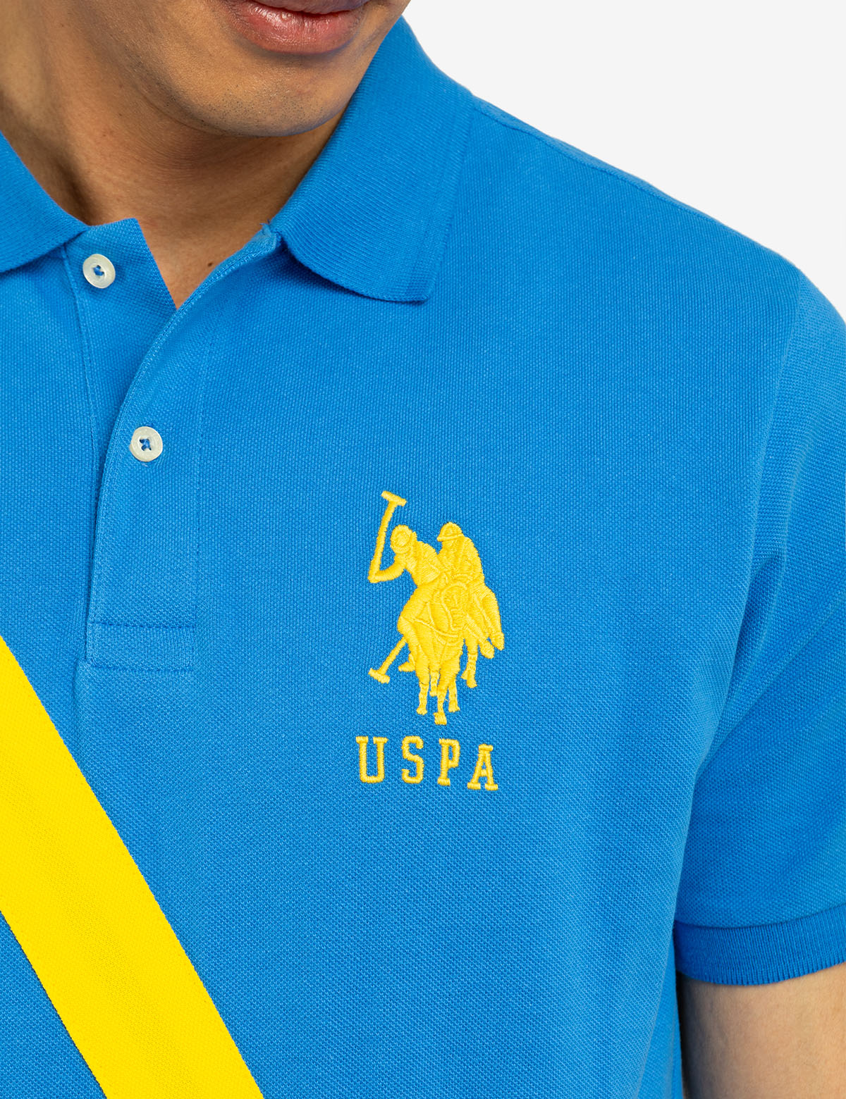 DIAGONAL SASH FRONT PIQUE POLO SHIRT