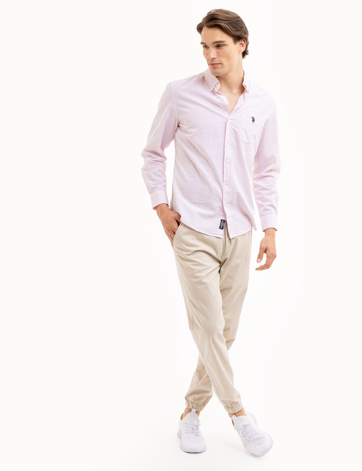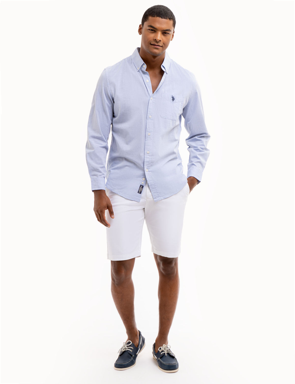 LONG SLEEVE HEATHER POPLIN WOVEN SHIRT