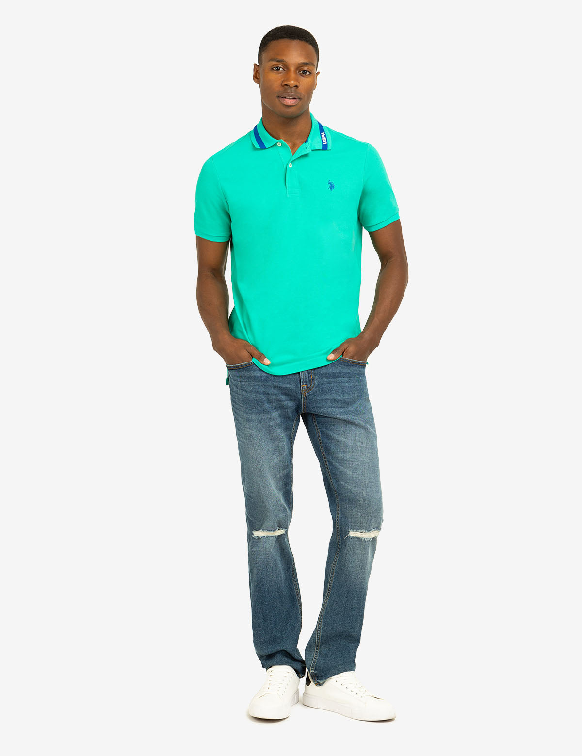 PIQUE POLO SHIRT WITH TIPPED COLLAR AND USPA PRINT