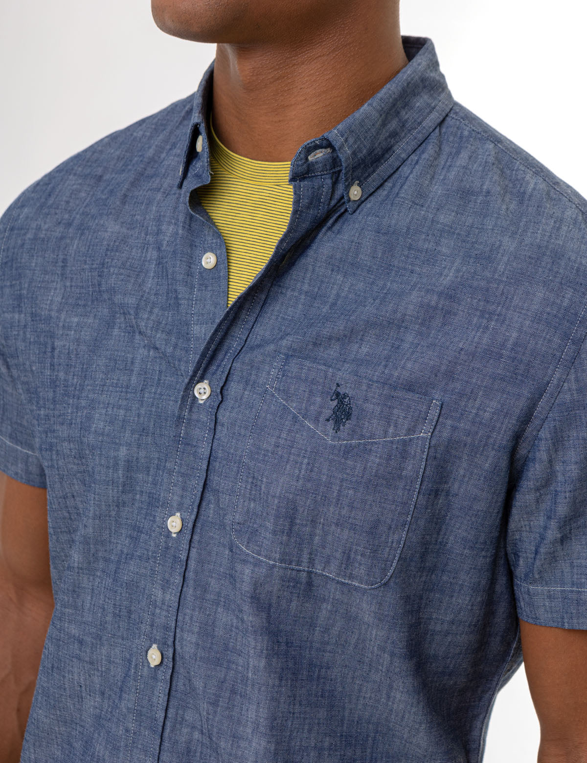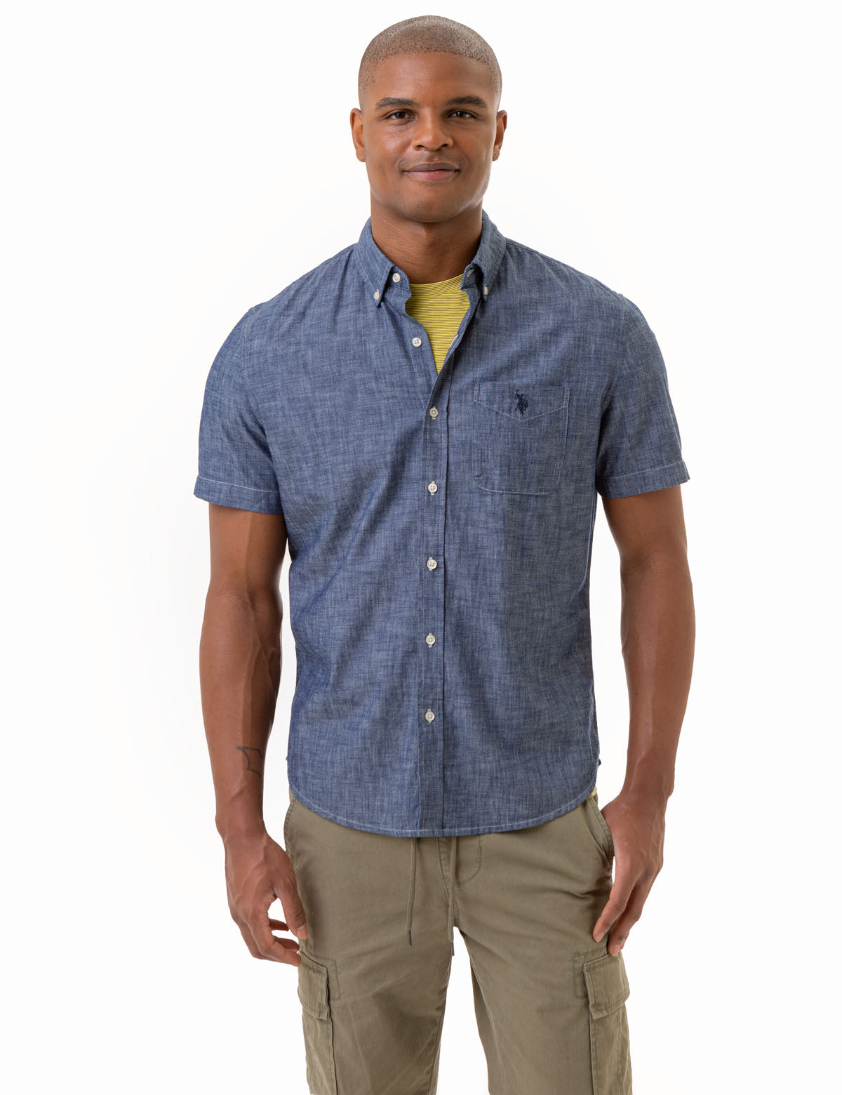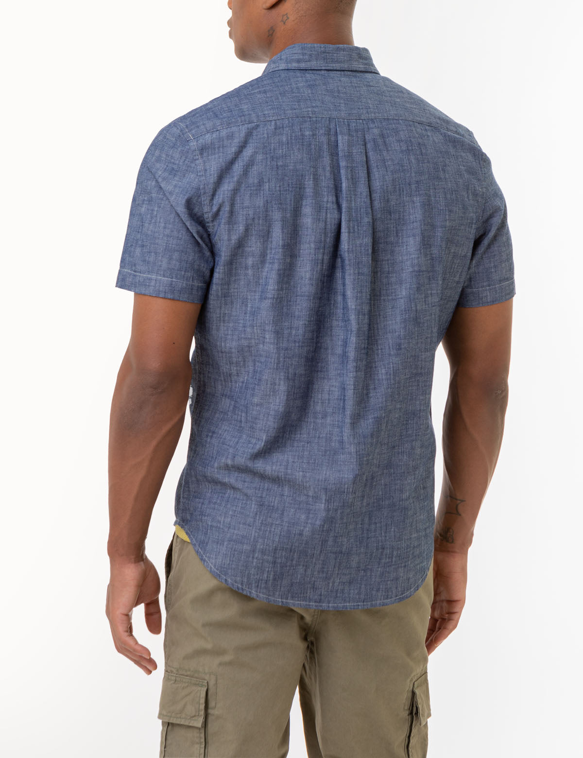 SHORT SLEEVE SLUB CHAMBRAY WOVEN SHIRT