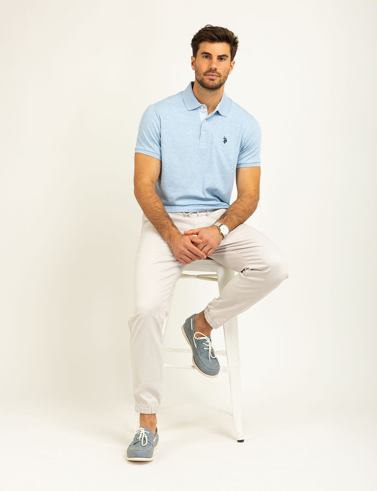 SOLID INTERLOCK POLO SHIRT WITH WOVEN TRIM