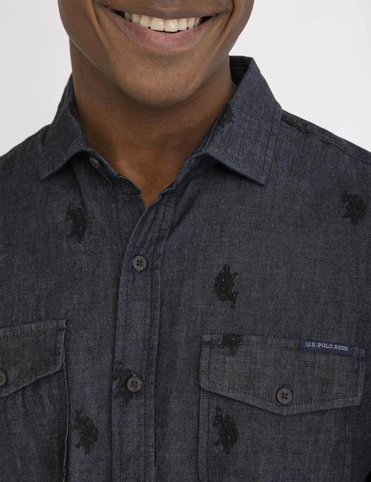 WHITE LABEL ALL OVER LOGO DENIM SHIRT