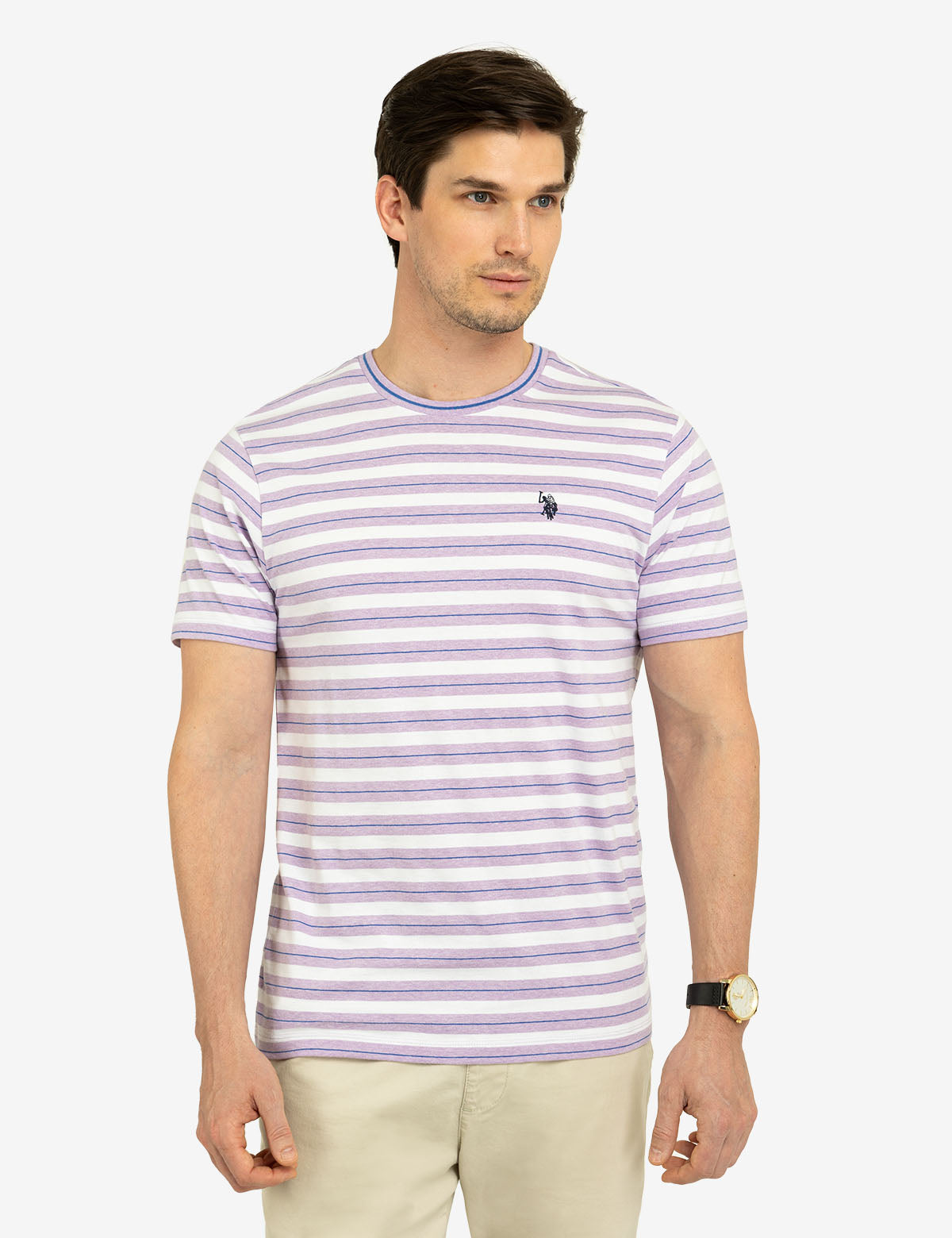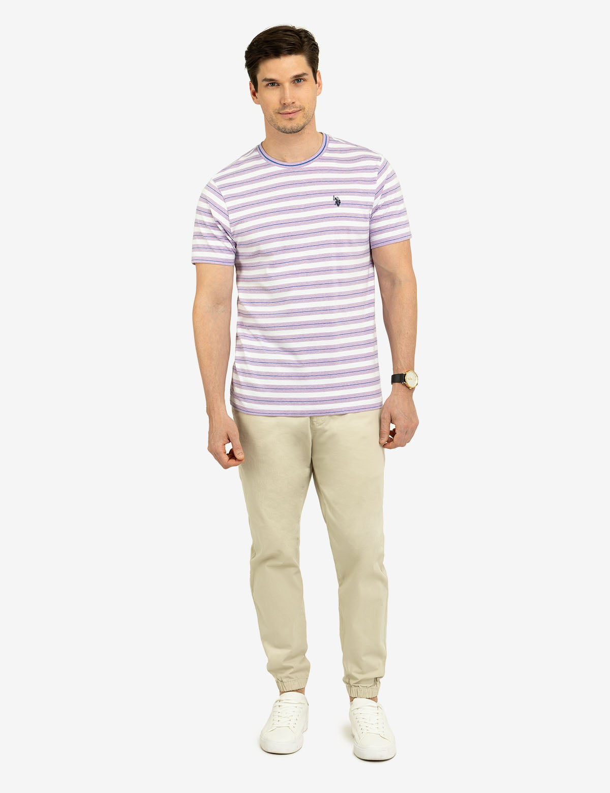 YARN DYE STRIPE JERSEY CREW NECK T-SHIRT